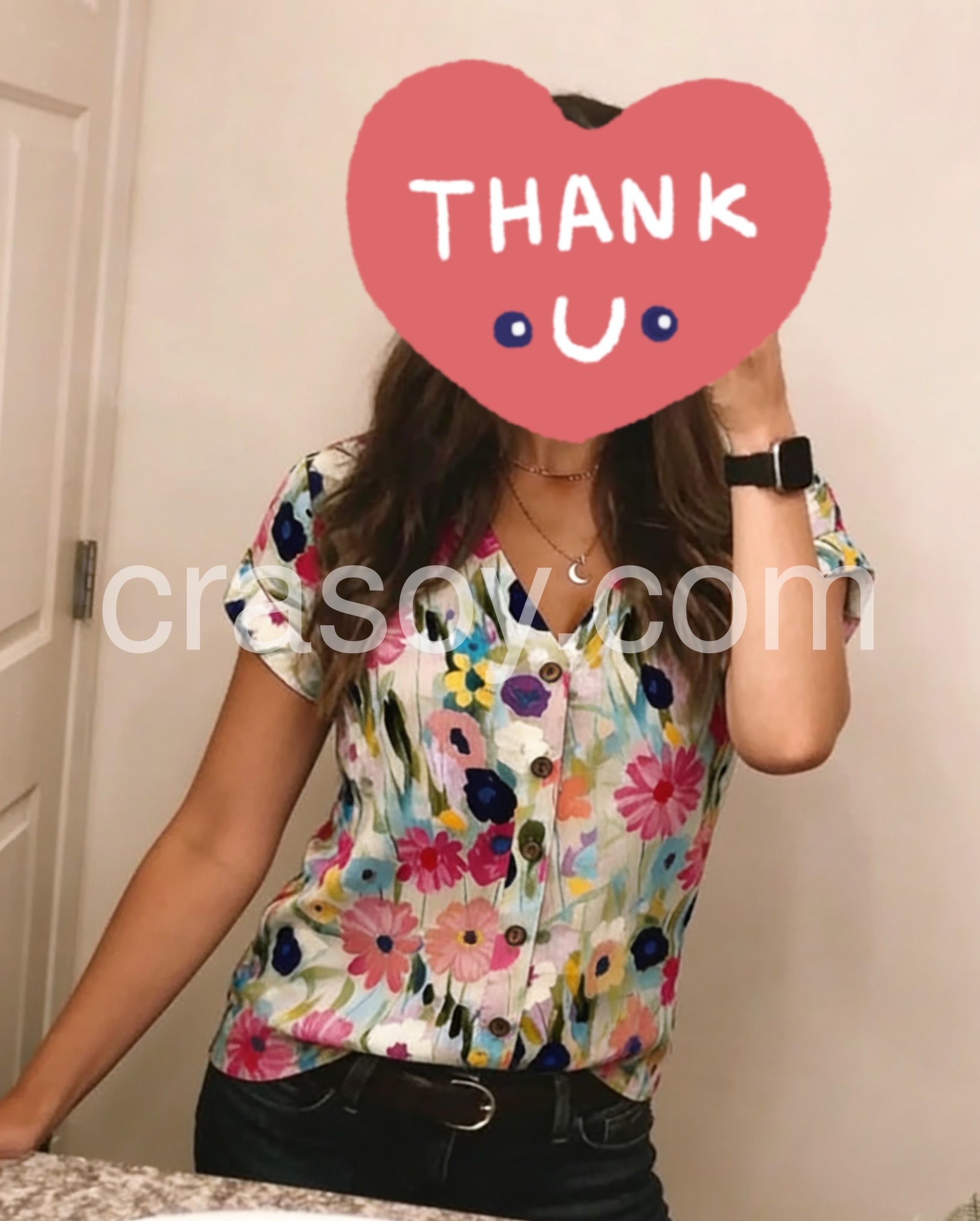 Love the artistic floral design. It feels very boho and chic. The V-neckline is very flattering and the shirt is incredibly comfortable. I have worn it twice this week already and just ordered another pattern!