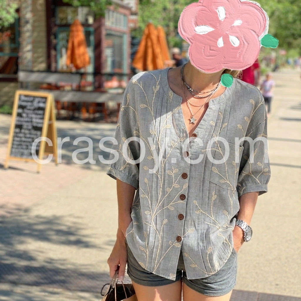 Love this top! The material feels like a soft linen blend, perfect for warmer weather. The leaf pattern is delicate and beautiful, and the fit is incredibly comfortable.