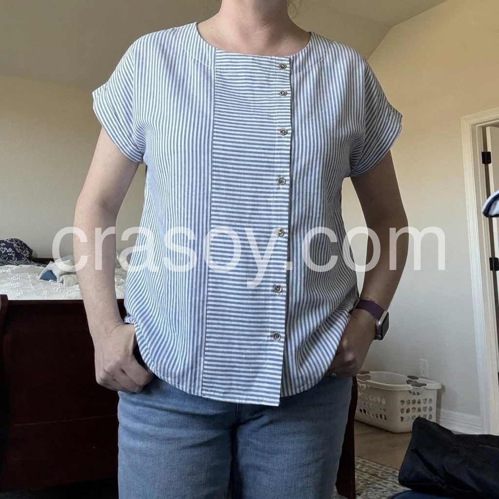 This is my new favorite summer shirt. The material is very lightweight and breathable, making it perfect for hot weather. The horizontal and vertical stripes are super flattering. I highly recommend washing it on a delicate cycle and hanging it to dry to keep it looking crisp.