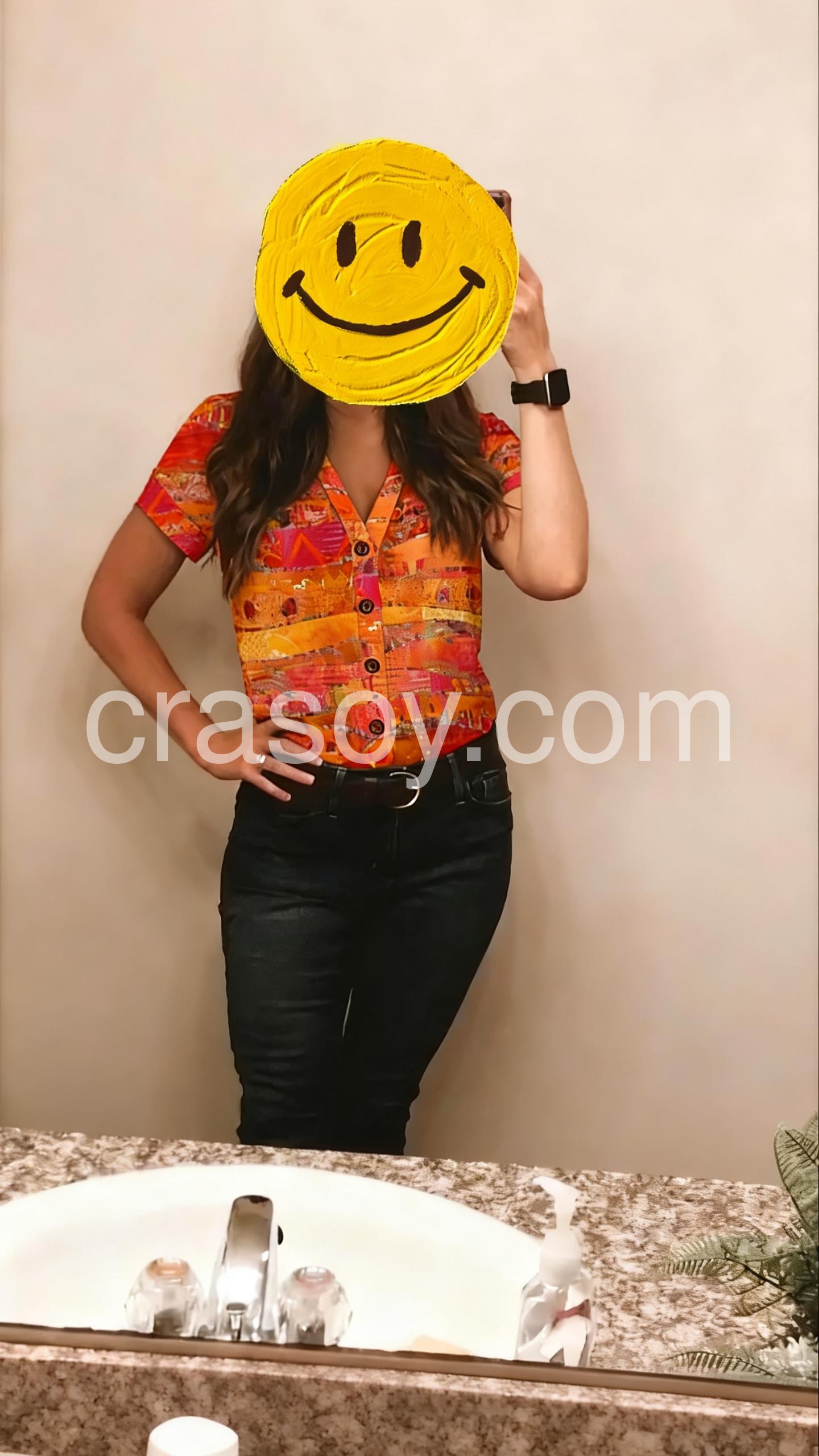 I absolutely love the vibrant colors on this top! It is exactly as pictured. The orange and pink hues are perfect for summer. The fit is incredibly flattering and the material feels very breathable. I wore it to a casual brunch and received so many compliments.