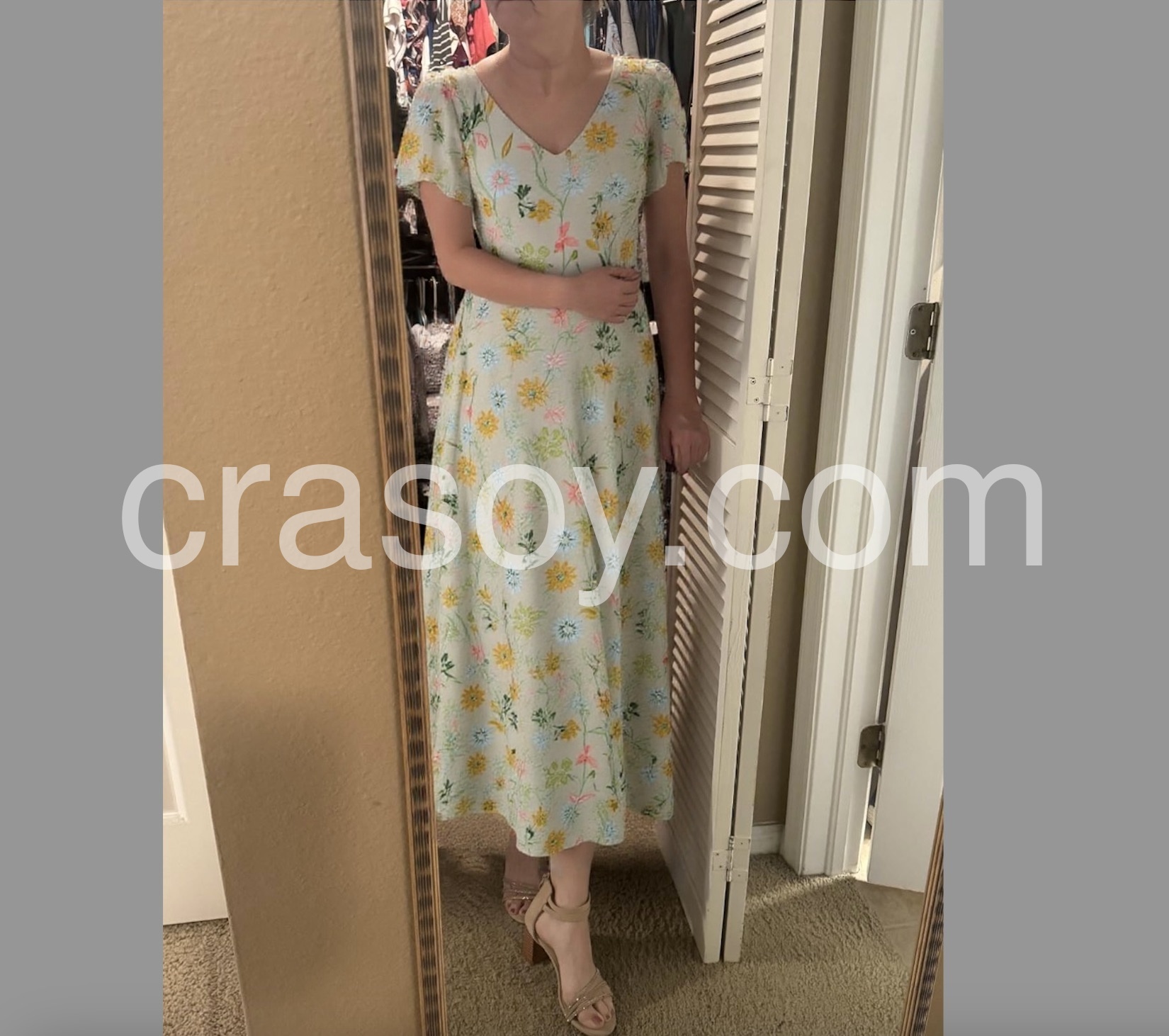 I am in love with the flutter sleeves and the subtle V-neck. It gives the dress such a romantic and feminine touch. The length is perfect for me with a pair of strappy heels.